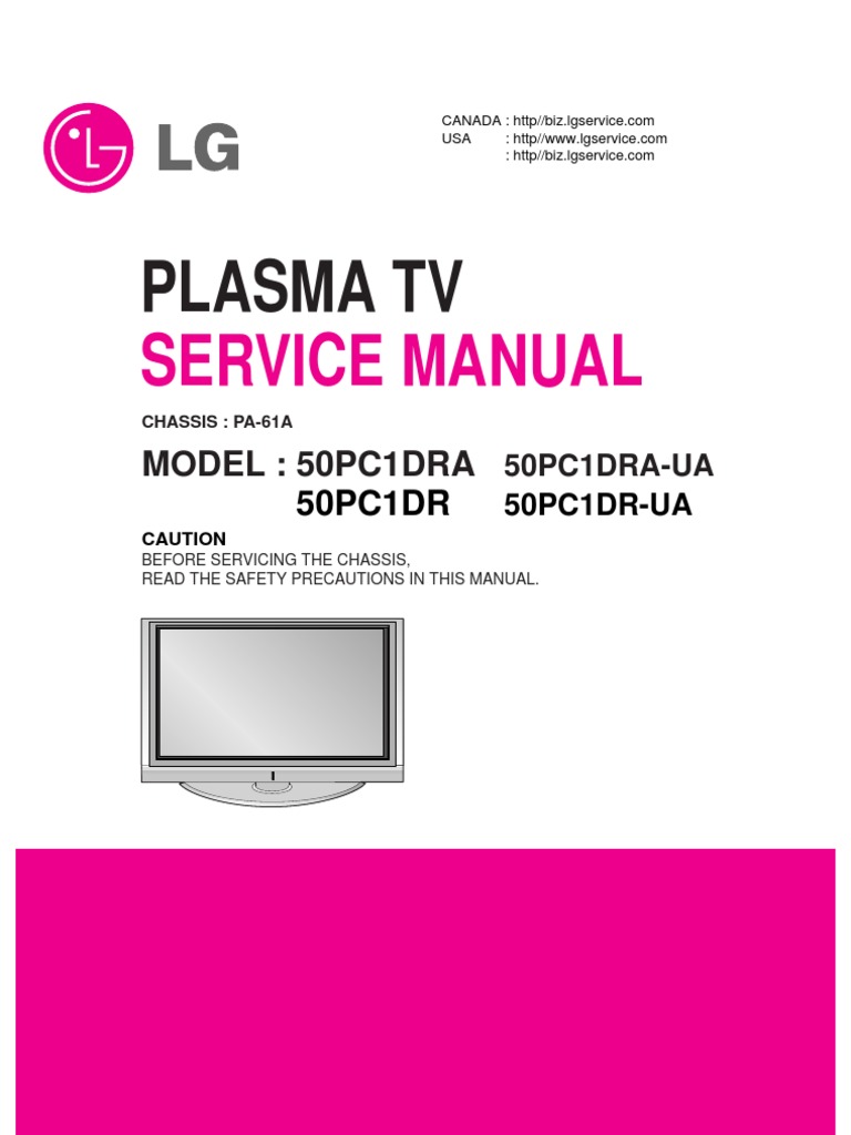 Lg 50Pc1dra Plasma Tv Service Manual read online